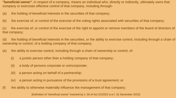 The beneficial ownership definition in the Company’s act is as follows.